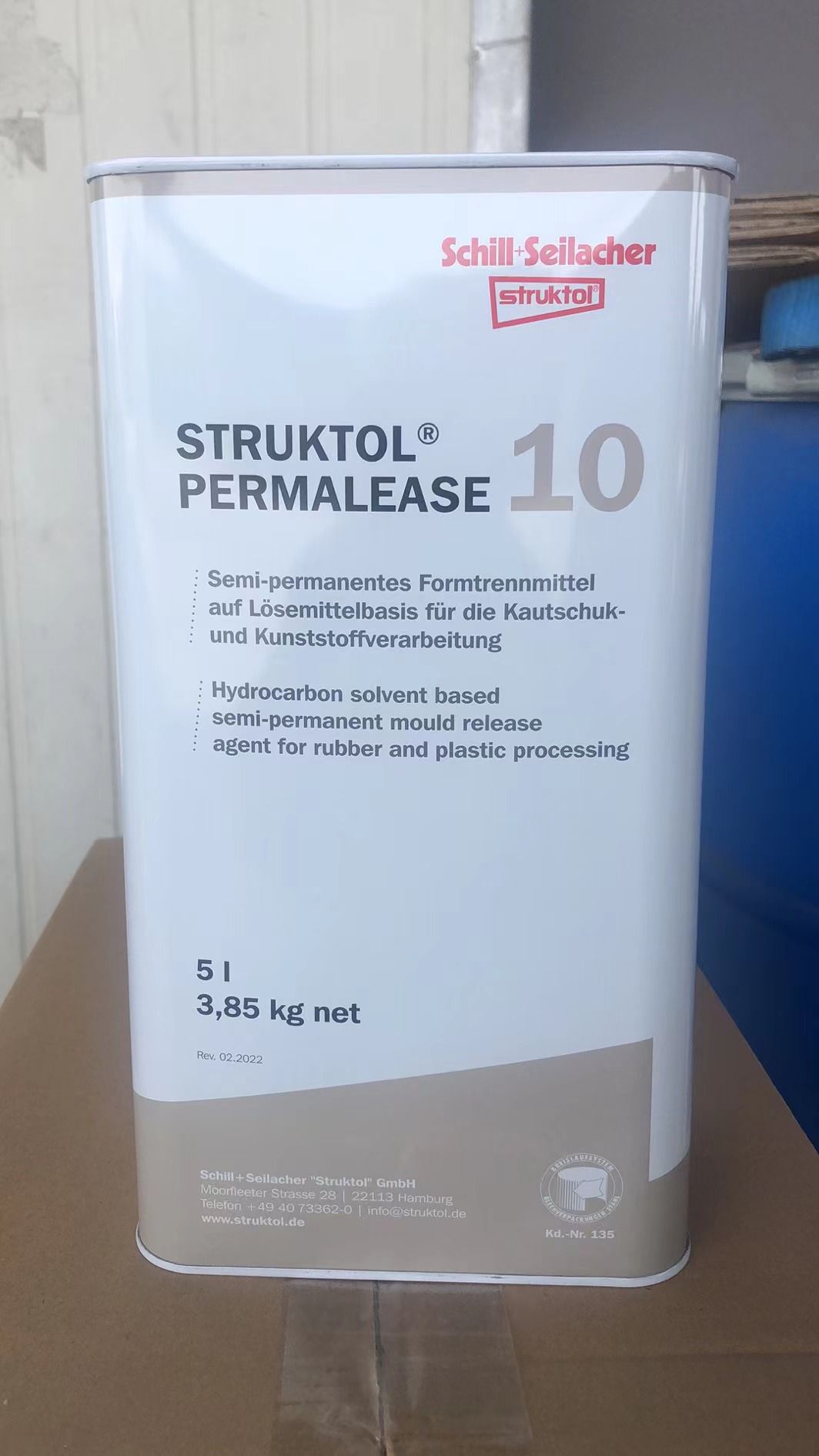 STRUKTOL Permalease 10 是一种溶剂型的半永久性脱模剂 , 可在模具表面形成固体薄膜 , 脱模效果持久 , 可大幅降低模具污染物积累 , Permalease 10 不会移转到成品上 , 对橡胶件后续粘着 , 印刷等加工不影响。